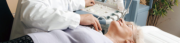 Bei dieser schmerzfreien Untersuchung lassen sich Grösse und Struktur der Schilddrüse und anderer Halsweichteile beurteilen. Es zeigen sich gegebenenfalls Knoten oder entzündliche Veränderungen.